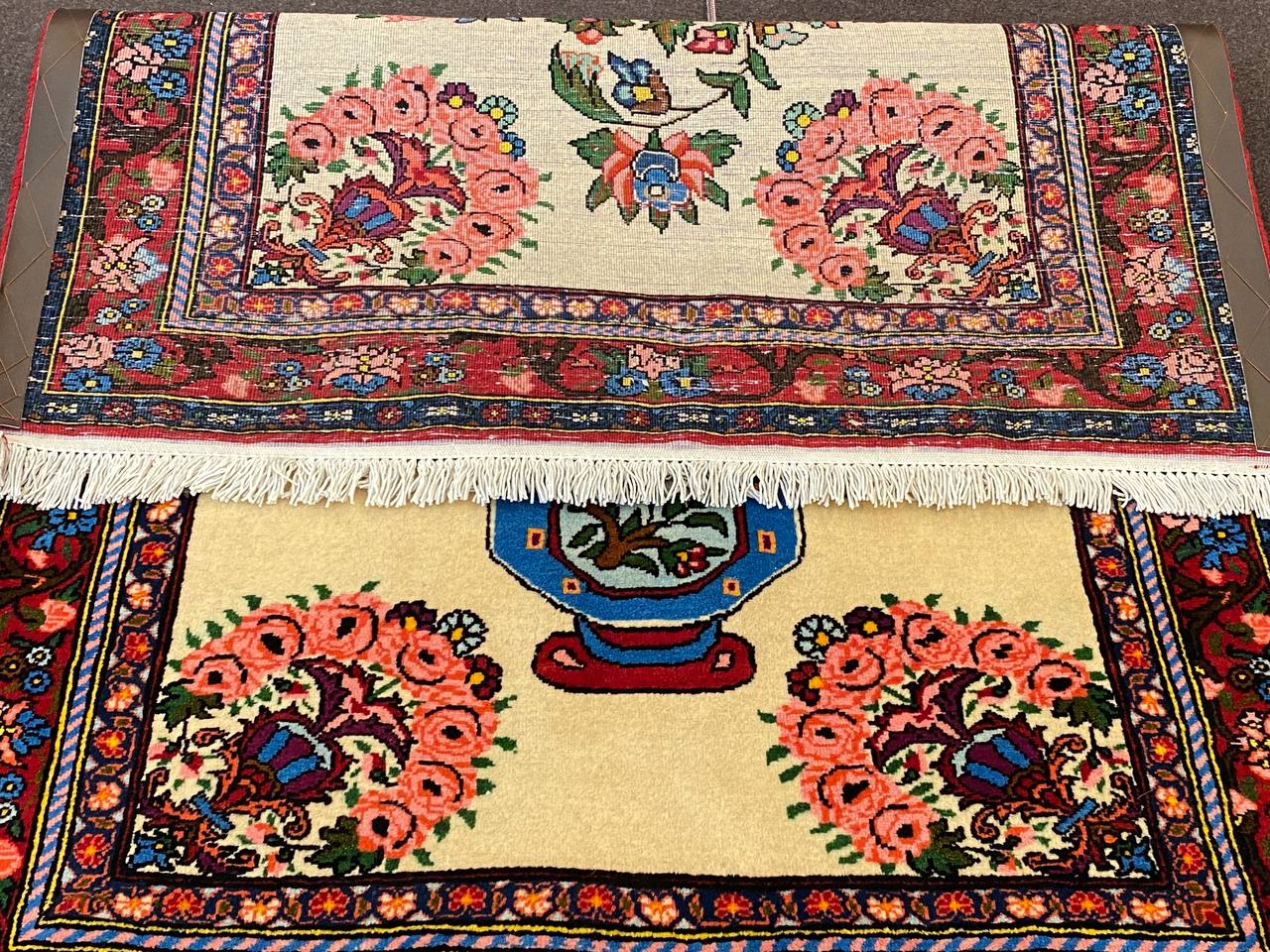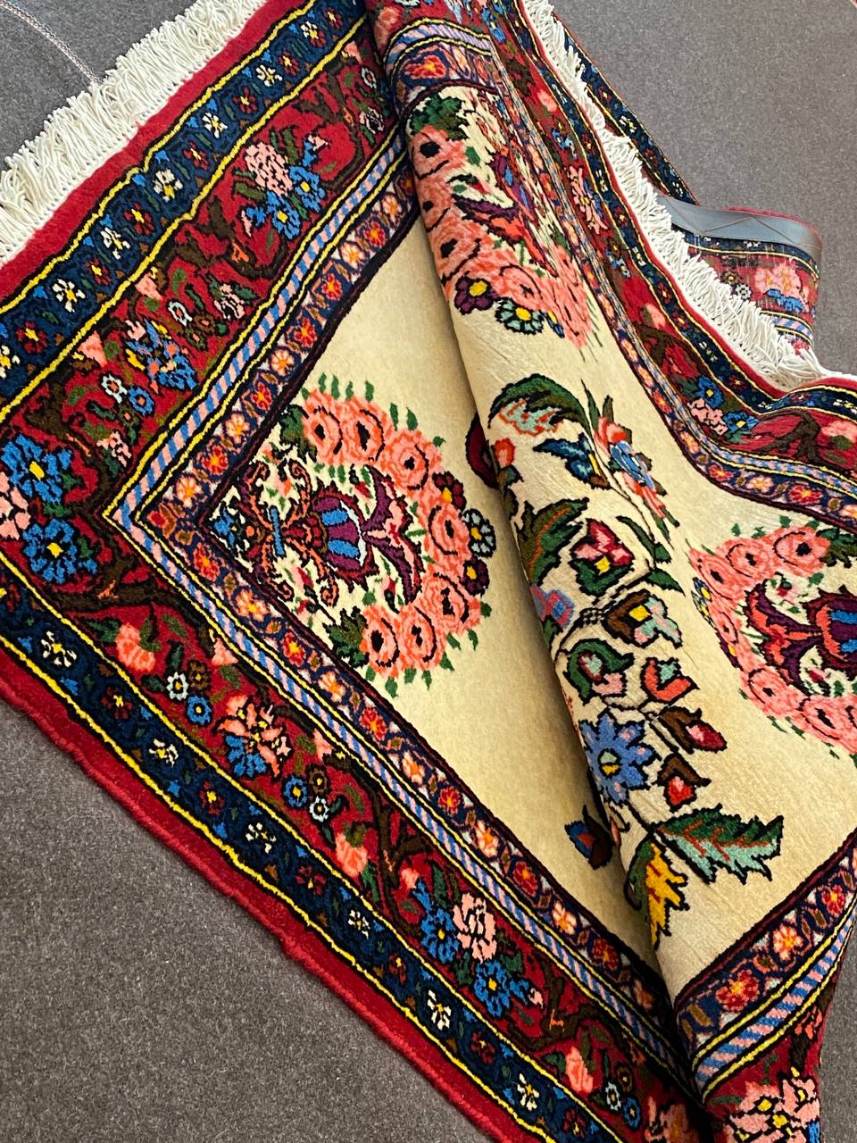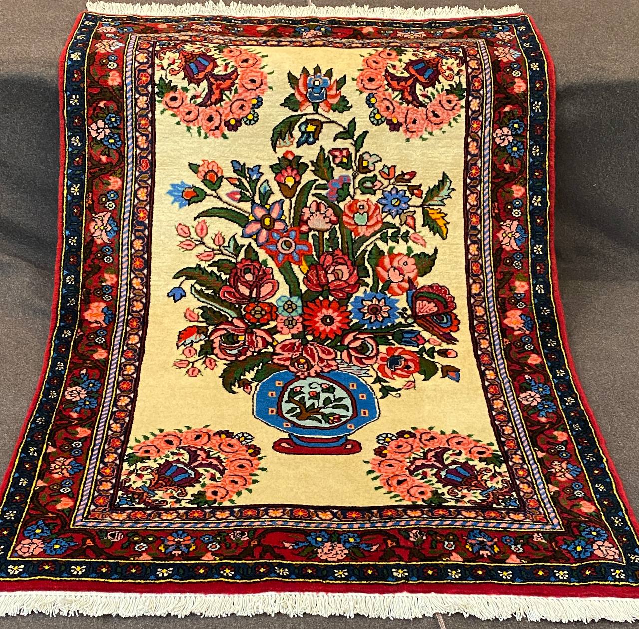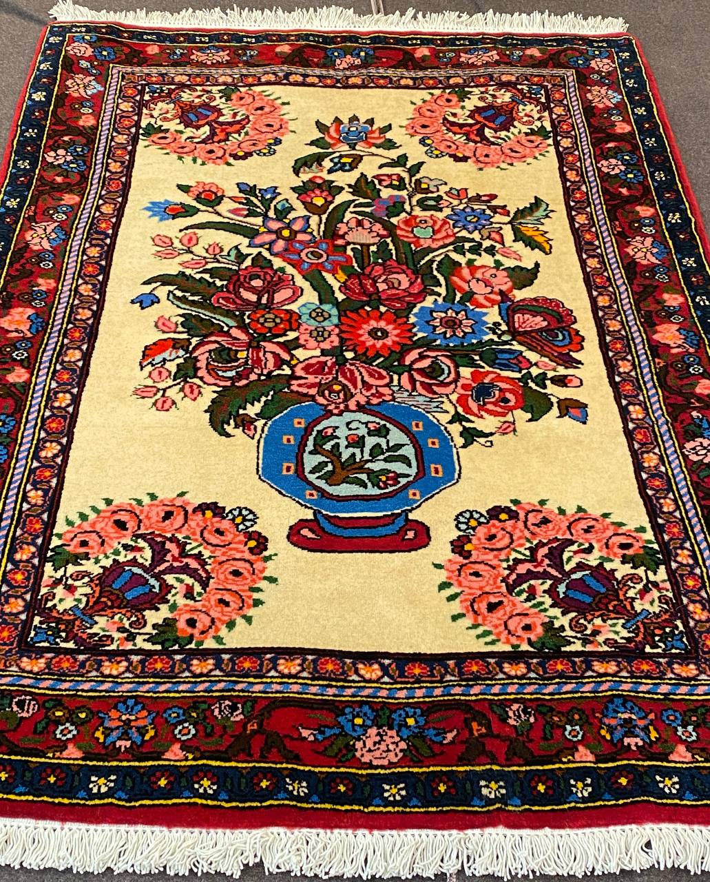 Un inusuale esemplare Bakhtiari è di ottima qualità, rappresenta un impianto floreale decorativo a vaso ed i colori allegri con la lana filato a mano. Questo manufatto è munito dall’attestato di provenienza e di autenticità.