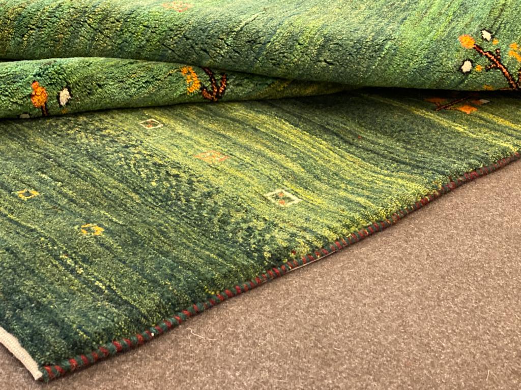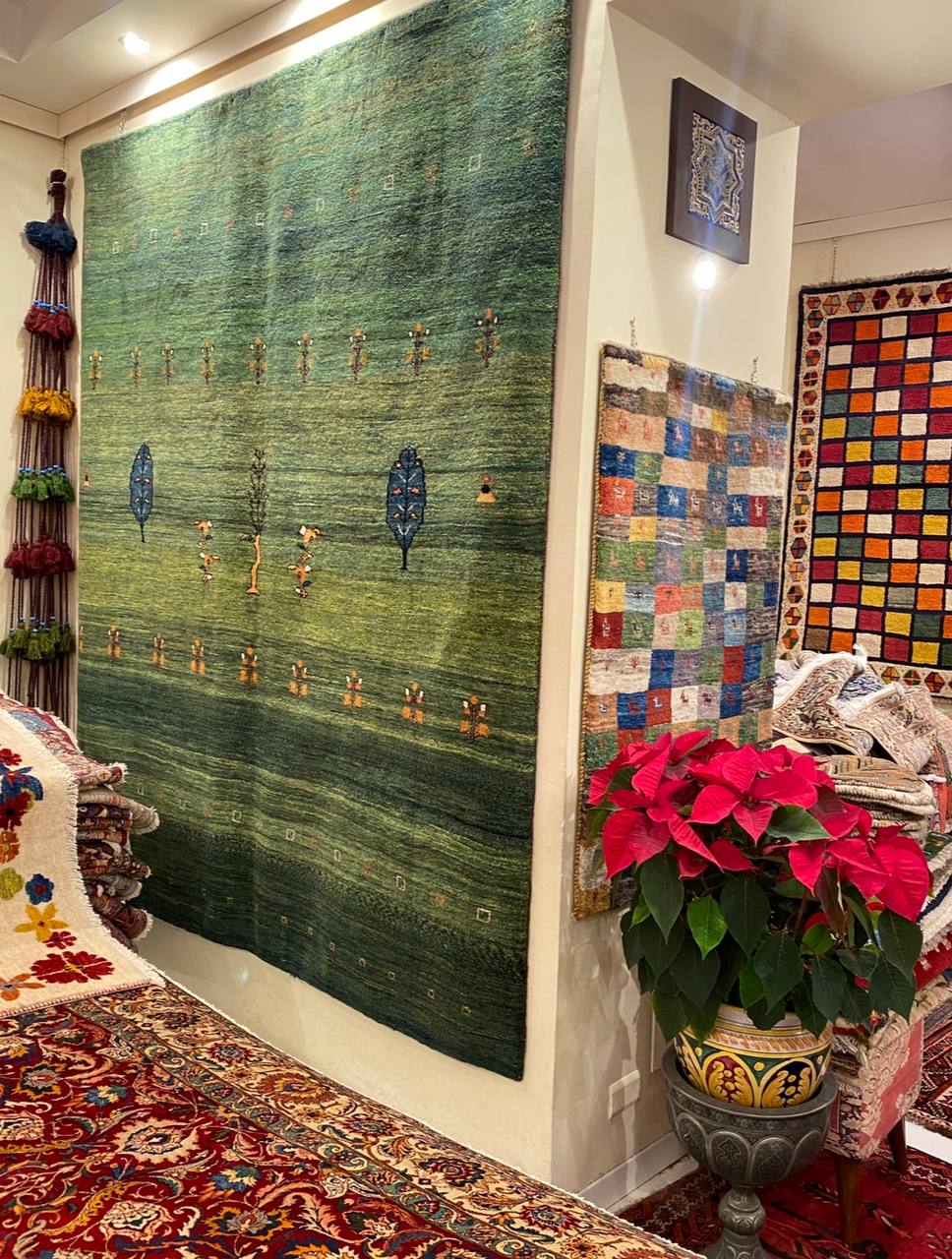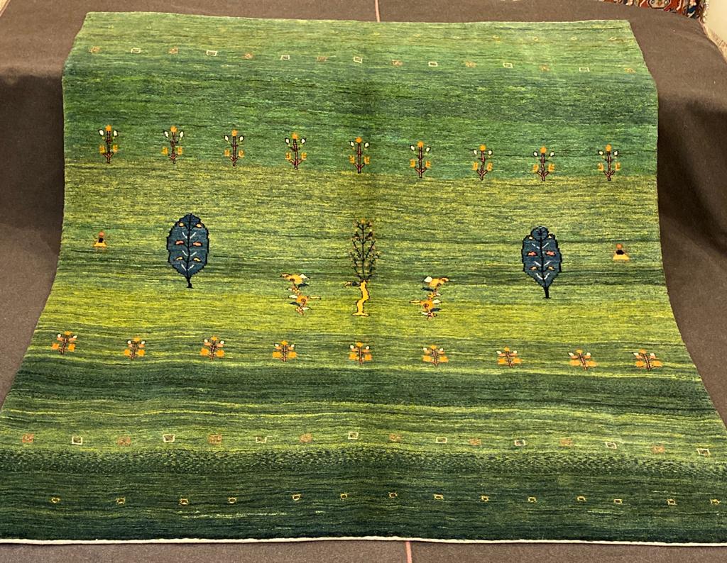 I Gabbeh sono annodati dai nomadi delle tribù di Qashqai. Sono realizzati con filato naturale di lana lavorata a mano e tutti i colori sono creati con tinta naturale, generalmente vivaci e contrastanti. Sono tappeti di vello alto, nodo grosso. I disegni sono semplici, stilizzati e geometrici, ispirati dall’ambiente che li circonda, per questo motivo sono tappeti unici nel loro genere.