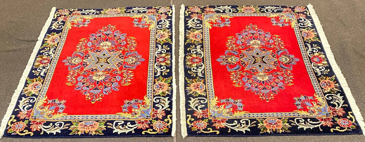 Una straordinaria Coppia Kashan degli anni settanta con classico motivo decorativo floreale a medaglione e una stupenda combinazione di colori gradevoli è accompagnata dell’attestato di provenienza e di autenticità.