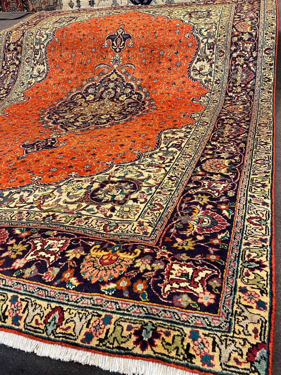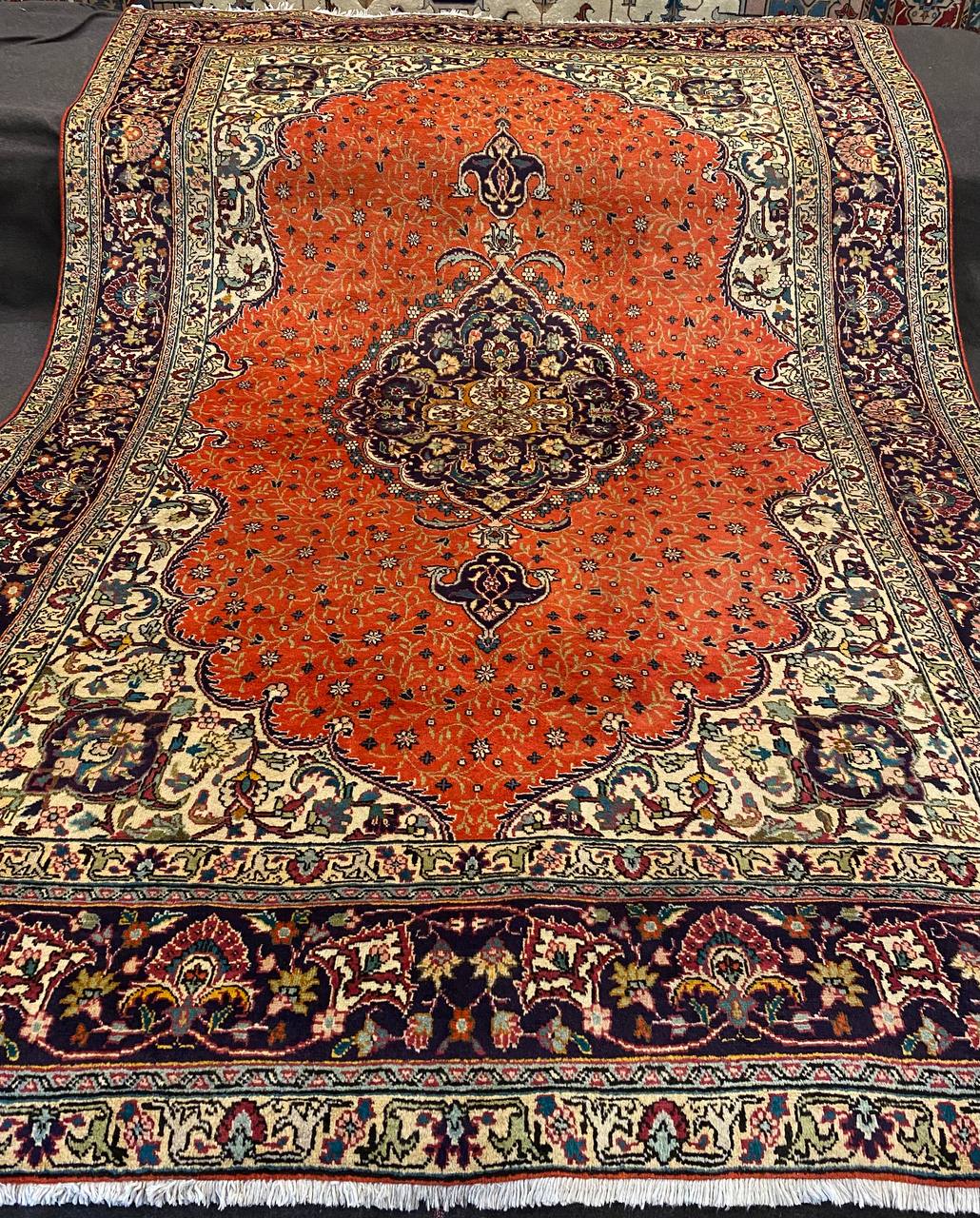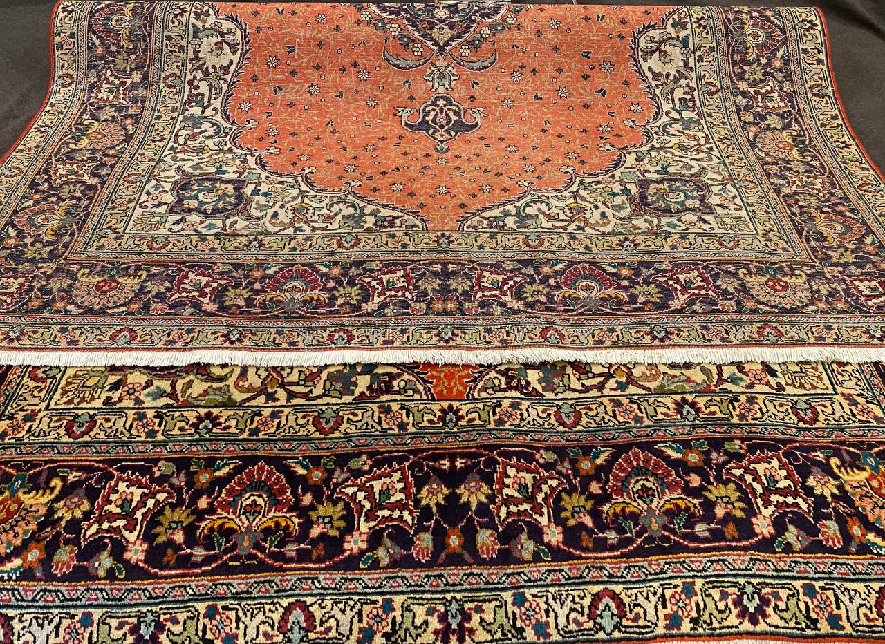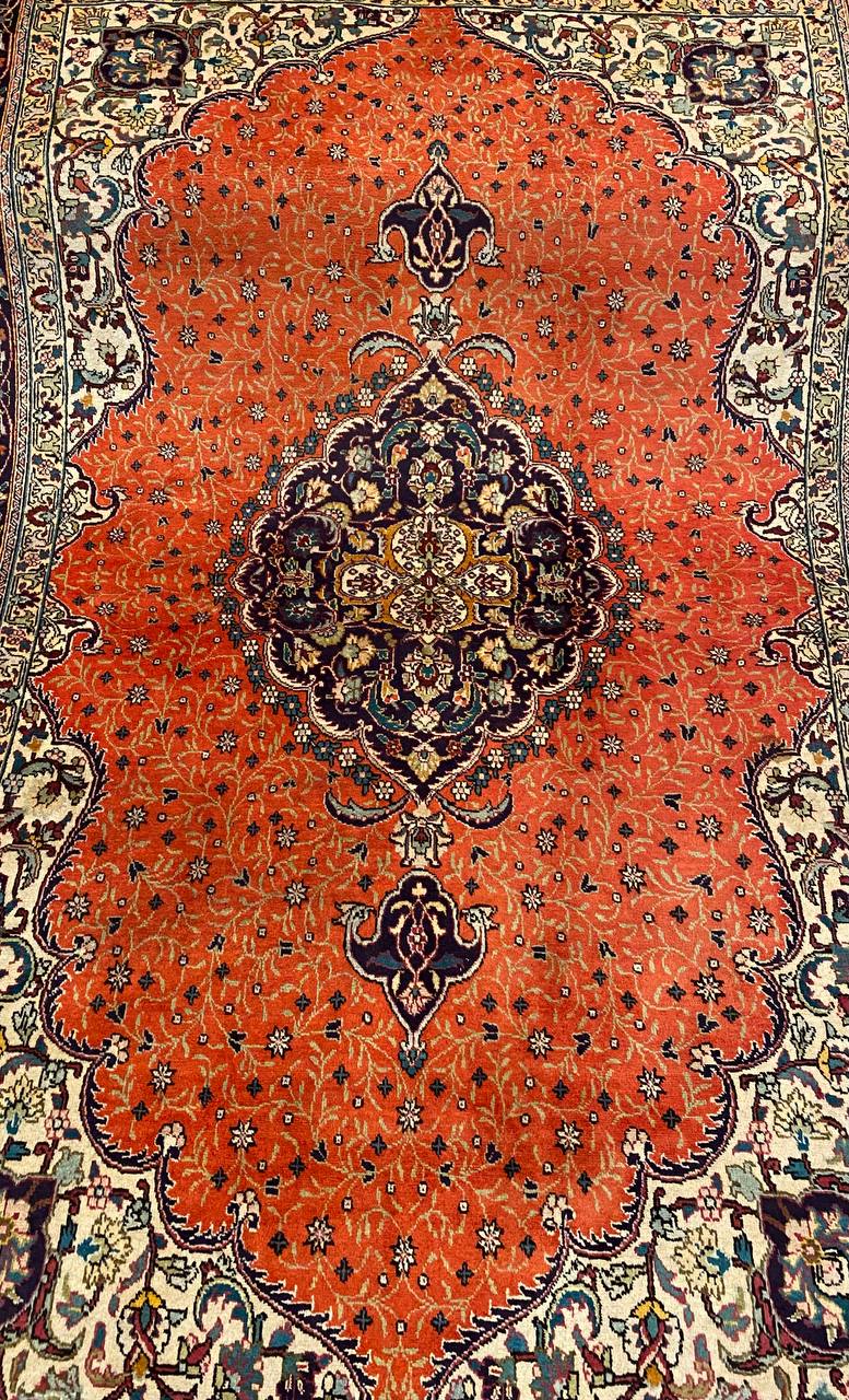 Questo esemplare Tabriz di vecchia manifattura è molto inconsueto con i colori caldi che donerà un tocco di eleganza a ogni ambiente. Lo stato di conservazione è ottimo ed è munito dell’attestato di provenienza e di autenticità.