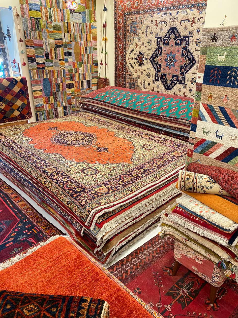 la città di Tabriz è situata a nord-ovest dell’Iran e uno dei principali centri di produzione di tappeti in Iran. La grande raffinatezza esecutiva caratterizza i tappeti Tabriz. La decorazione è del tipo floreale, spesso con un medaglione centrale. I motivi, rami fioriti, arbusti e foglie sono di grandi dimensioni oltre a questi disegni classici esistono anche motivi vegetali e animali. Sono frequenti anche i tappeti decorati da minuti motivi herati a tutto campo. L’annodatura, fitta e accurata, è realizzata con il nodo simmetrico. I colori sono naturali con una vasta, gamma cromatica.