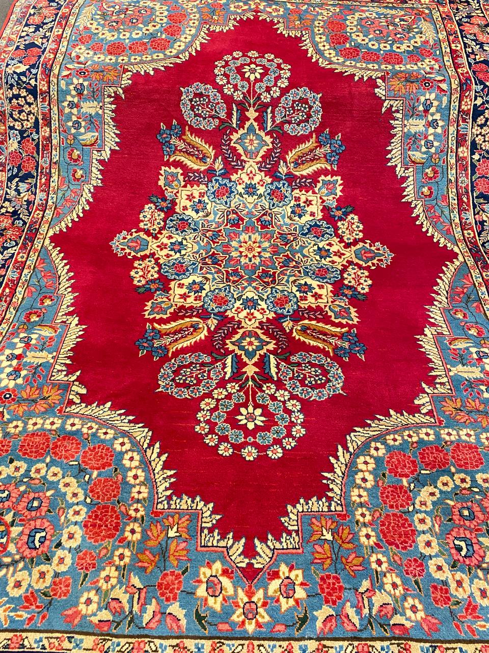 Questo meraviglioso esemplare Yazd ha una spiccata eleganza ed armonia sia nei motivi che nei colori. Questo manufatto è accompagnato dell’attestato di provenienza e di autenticità.